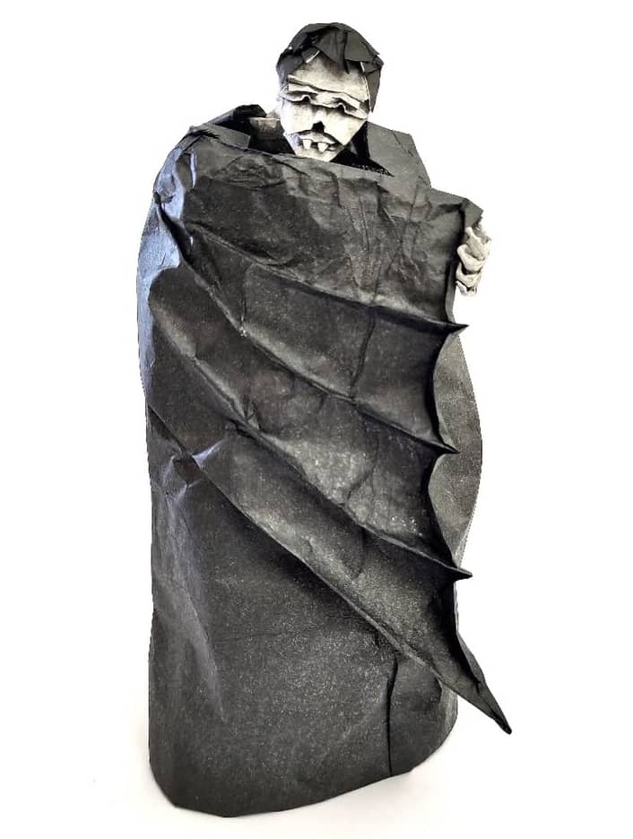 This origami vampire by Peter Buchan-Symons masterfully balances complexity and restraint. While the face is full of intricate detail, much of the body is intentionally hidden within a rolled cloak. A choice that adds mystery and evokes the shape of a bat’s wing. 🤌